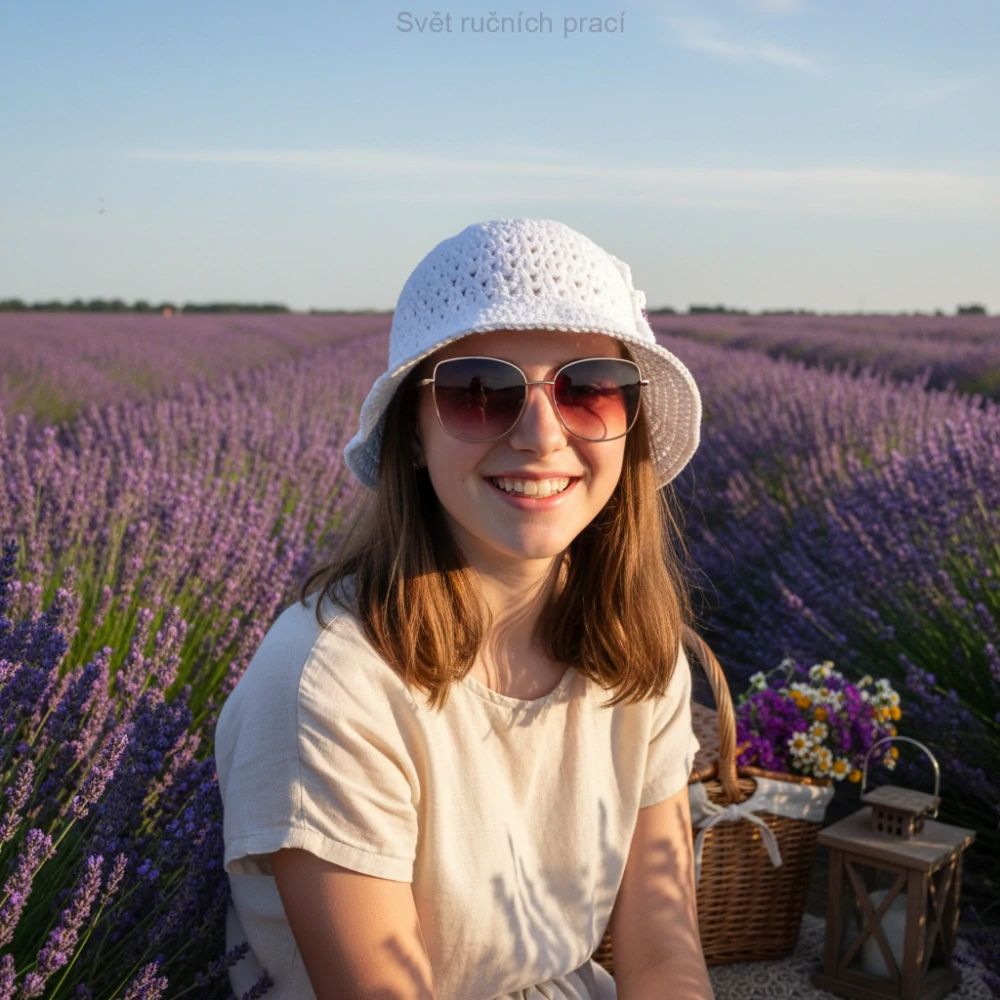 Je vhodný na léto .V tomto provedení zhotoven jen jediný kus. Lze ho různě tvarovat tak, jak bude nejvíce slušet. Bílá barva velmi dobře doplní každý holčičí outfit.